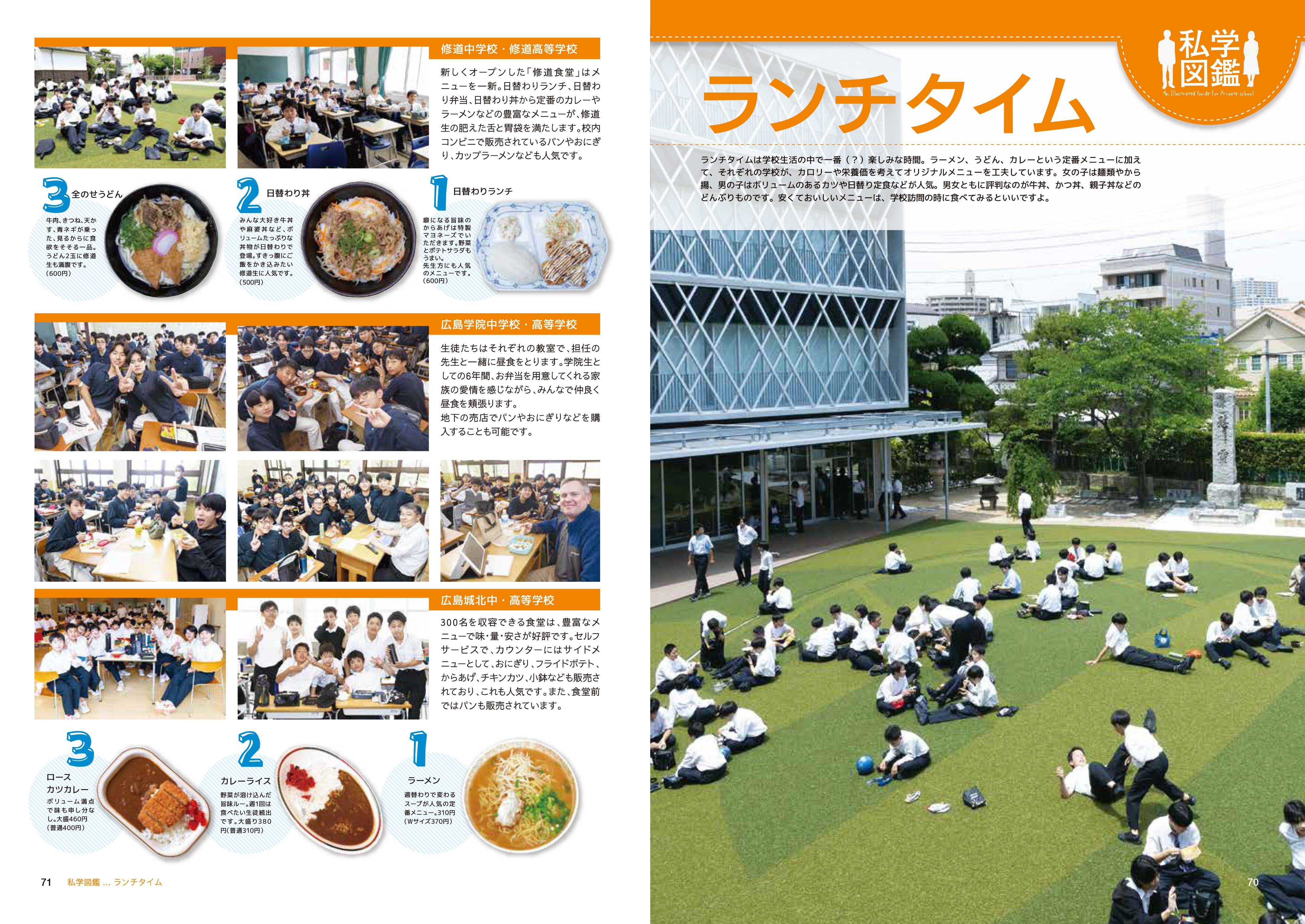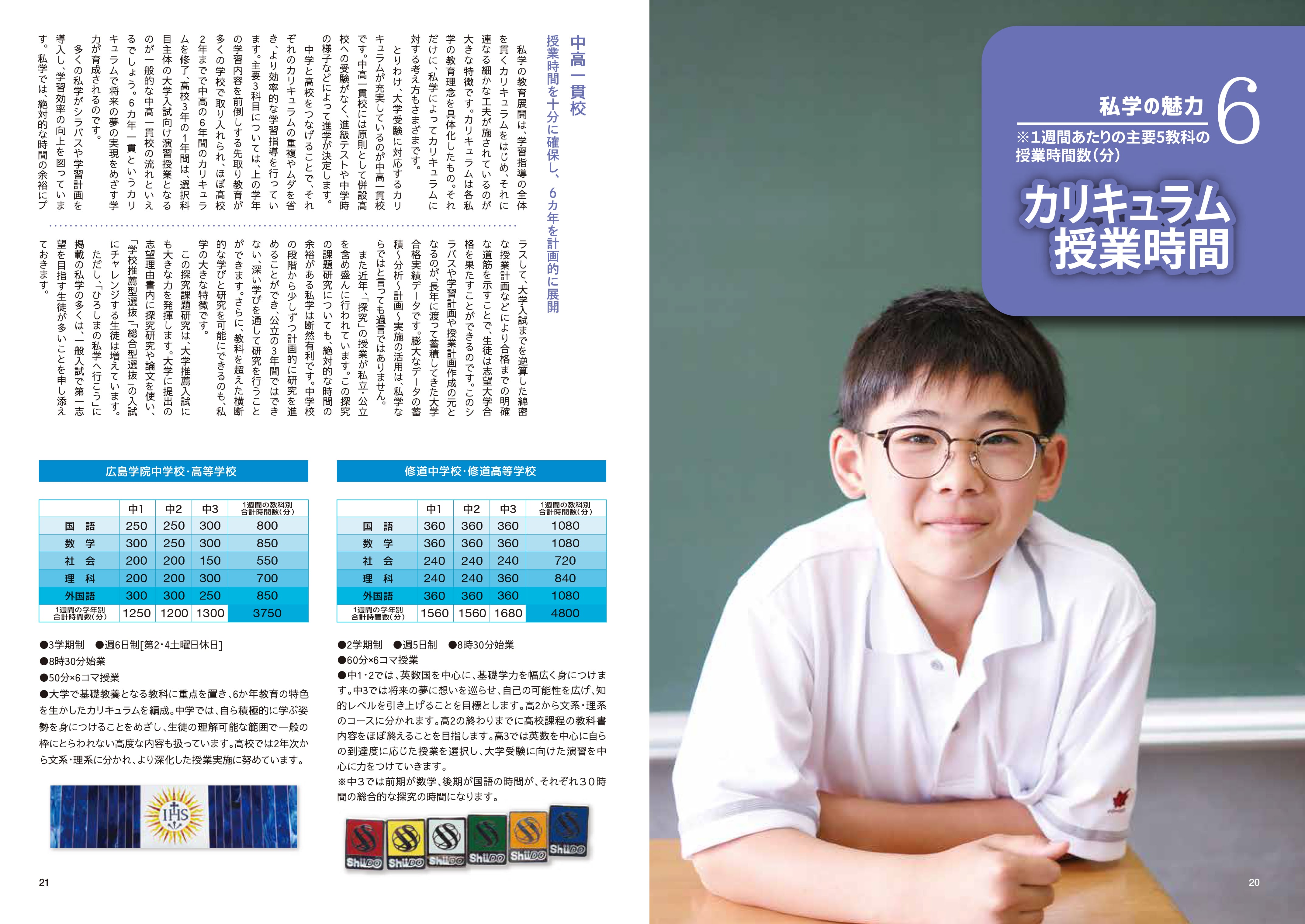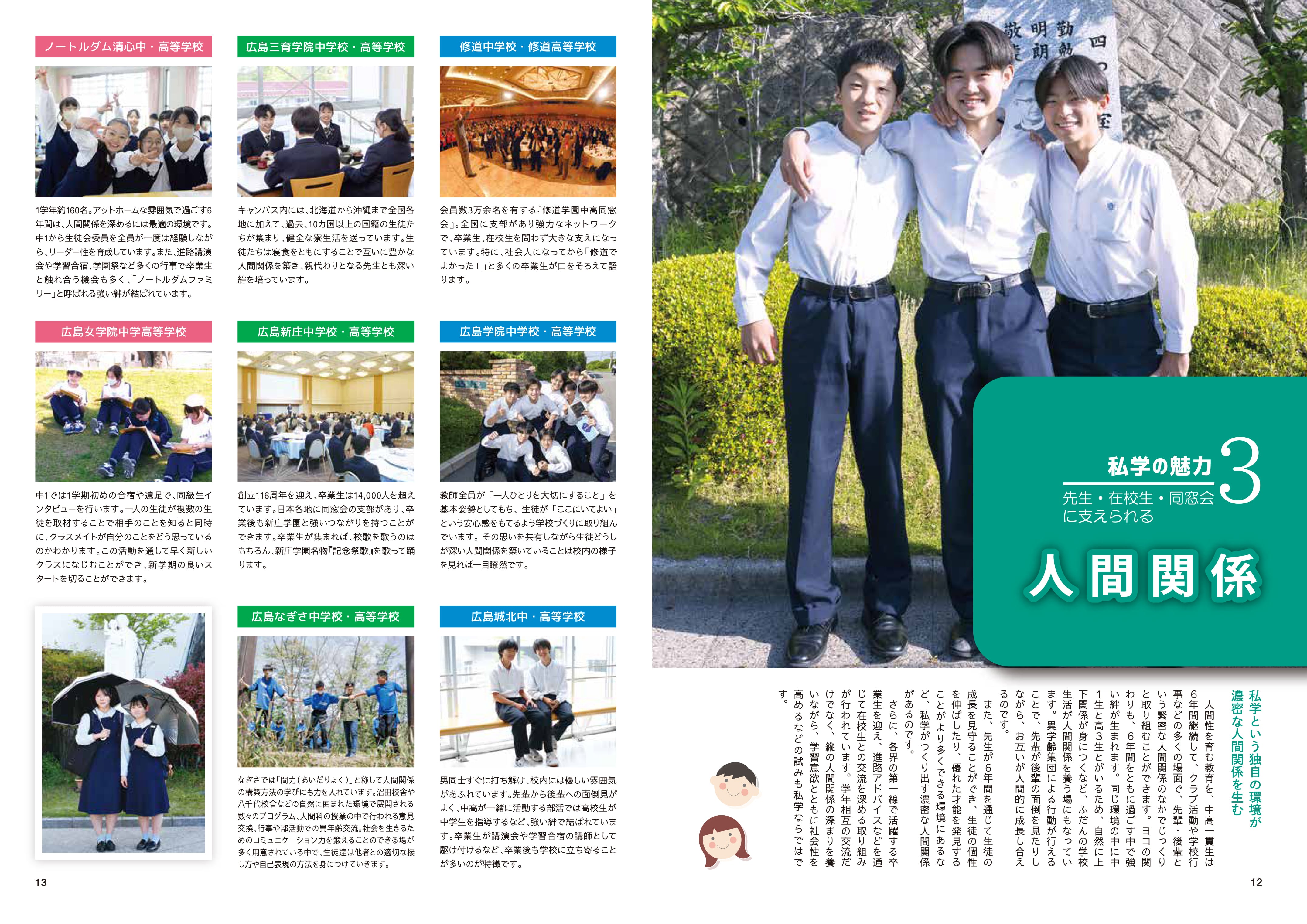 広島県内の代表的な私学である修道中学校・高等学校、広島学院中学校・高等学校、広島城北中・高等学校、広島三育中学校・高等学校、広島新庄中学校・高等学校、広島なぎさ中学校・高等学校、ノートルダム清心中・高等学校、広島女学院中学高等学校。この8校の魅力を徹底研究した全ページカラーの情報誌です。「私学の魅力」では建学の精神から奨学金制度といった17の観点からみた各校の魅力を紹介。「私学図鑑」では制服・ランチタイム・文化祭・体育祭・オリジナル行事・修学旅行・学校説明会・寮生活を紹介。そのほか各校の学習指導と大学受験対策、創立者の肖像、校長先生からのメッセージ、卒業生からの母校応援メッセージを掲載。「学校紹介」では各校の先生方、生徒のみなさんのご協力のもと、授業の様子・休憩時間の様子はじめ、さまざまな場面を徹底取材させていただき、豊富な写真と詳細な文章で、各校の魅力を楽しく存分に紹介しています。